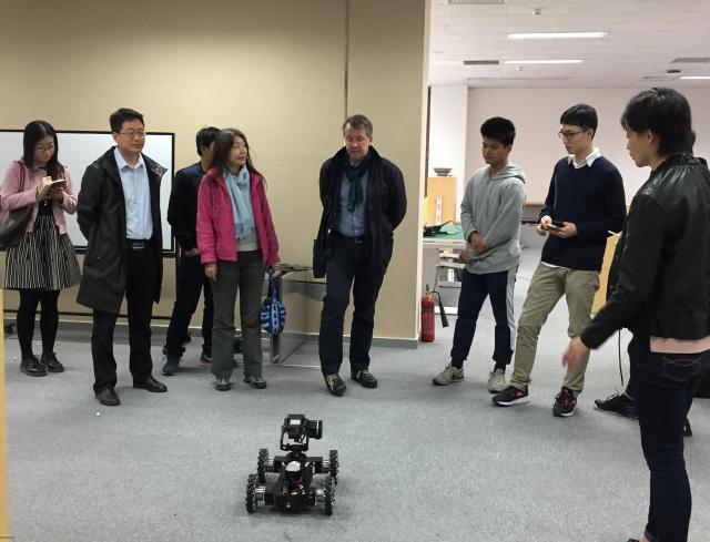 2017年4月2日,法国尼斯理工大学校长、天津大学国际工程师学院(Tianjin International Engineering Institute,TIEI)院长菲利普到访天津大学北洋园校区计算机实验教学中心。IT学科创新创业训练基地副主任王建荣、计算机学院教授喻梅及实验教学中心相关老师陪同参观交流。