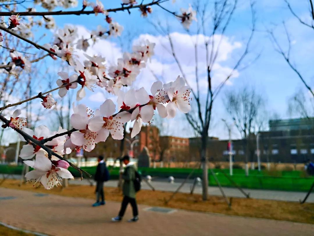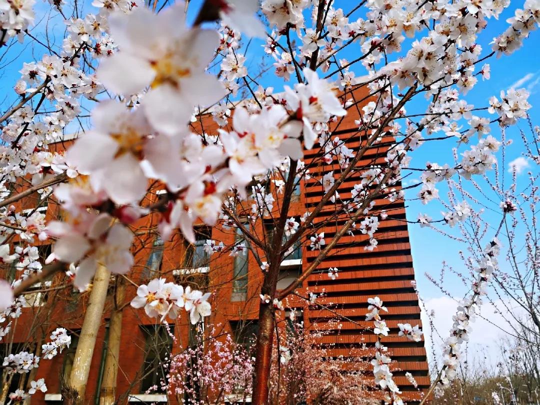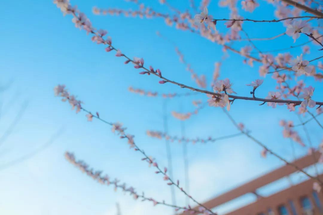 古代的文人墨客,向来不吝惜辞藻来描绘桃花。白居易说:“人间四月芳菲尽,山寺桃花始盛开,长恨春归无觅处,不知转入此中来”,苏东坡则说桃花:“争开不待叶,密缀欲无条。”你看,春风初起,叶子尚未萌发,天津大学智能与计算学部55教周围的花朵已经挂满枝条。