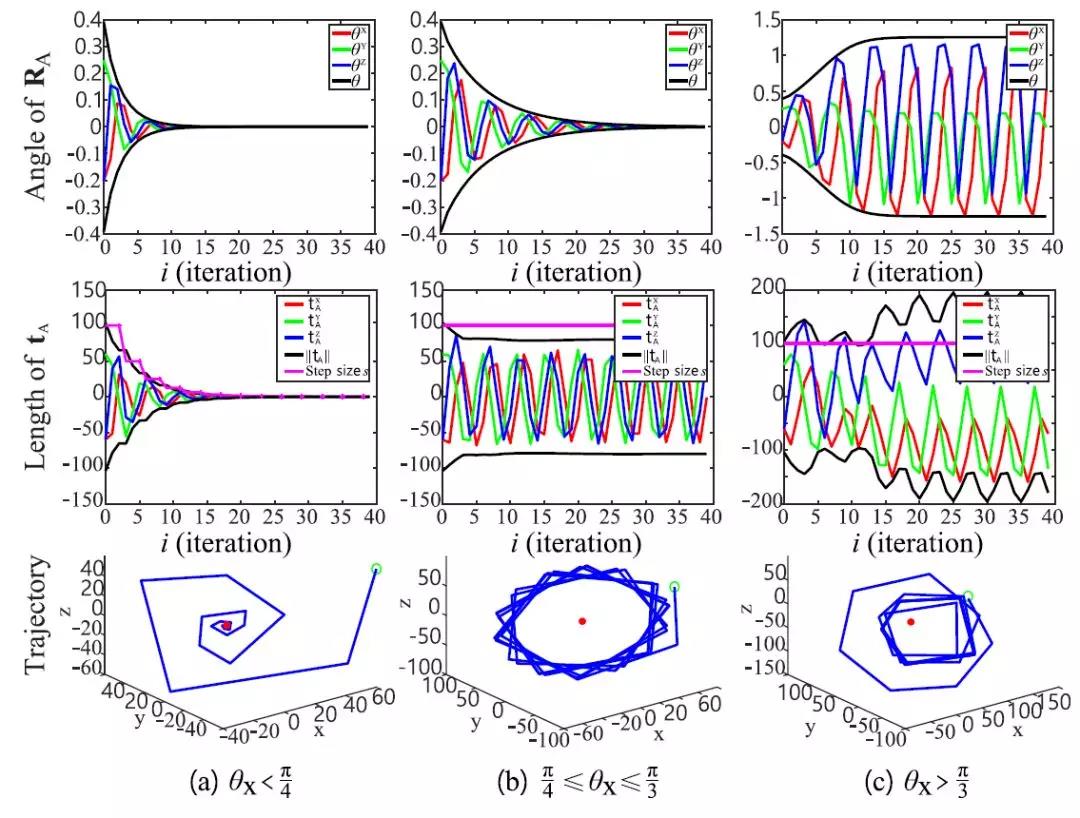 )重定位的RA、TA和运行轨迹的收敛性分析。可以看出,当