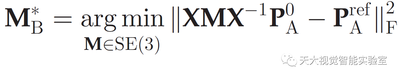 表示用于将相机或平台从当前位姿转移到参考(目标)位姿所采取的物理运动,并采用下标A和B以区分相机(手)和运动平台(眼)的坐标系统。