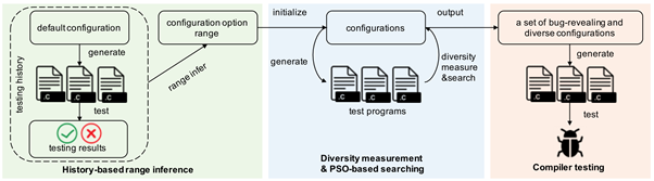 该成果通过分析历史信息,获得具有揭错能力且多样化的测试配置,从而指导生成更加有效的编译器测试程序,来进行编译器测试。具体如下: