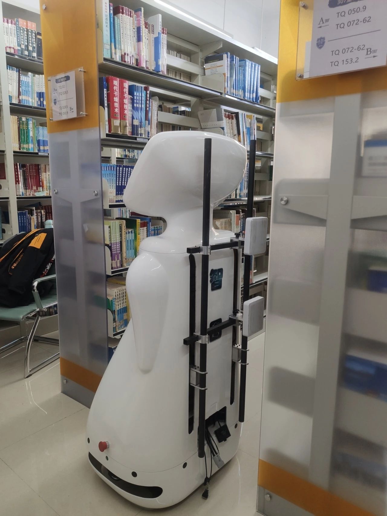 在盘点书籍时,安装在机器人内部的RFID阅读器能够自动扫描书架上的图书,自动读取标签信息,完成图书定位工作。但由于多径效应等因素的干扰,射频信号不是很稳定,造成局部图书的排序存在一定误差。研究团队使用计算机视觉和人工智能技术对书脊文字进行识别,对射频图书定位结果进行局部纠错,可以进一步提高图书盘点精度。