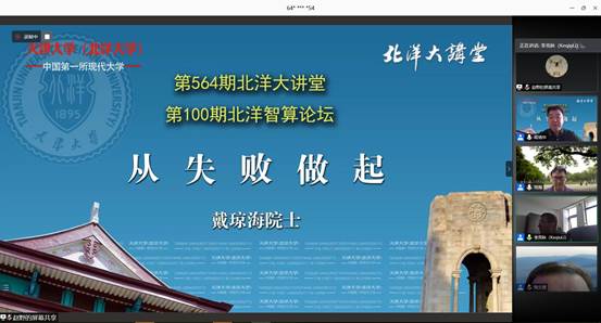 (通讯员 李坤)9月4日15点,第546期北洋大讲堂(暨第100期北洋智算论坛)在腾讯会议开讲,中国工程院院士、中国人工智能学会理事长戴琼海教授为师生们带来题为“从失败做起”的精彩报告,智能与计算学部主任李克秋致开幕词,学部副主任胡清华主持讲座。