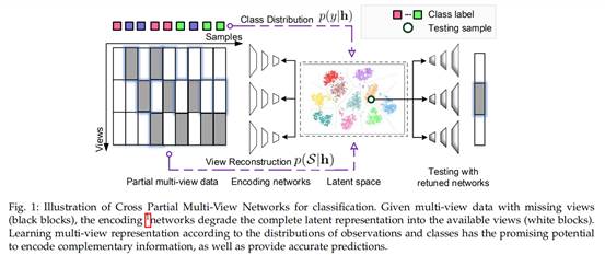 如Fig.1所示,我们提出跨缺失视图网络模型(CPM-Nets),通过构建隐空间表示还原完整视图,并根据结构化约束获得强泛化能力分类模型。