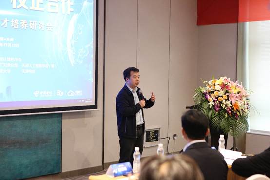 随后,来自天津大学、南开大学、河北工业大学、天津科技大学的四位专家学者分别介绍了高校人工智能专业的学科建设情况和人才培养方案。来自中国电信股份有限公司天津分公司、中汽数据有限公司、国家超级计算天津中心、第四范式(北京)技术有限公司、天津开发区精诺瀚海数据科技有限公司的企业代表介绍了企业在人工智能领域的技术进展和人才培养计划,也向在座的高校提出了人才输送需求以及进行校企深度融合、人才联合培养的意愿。