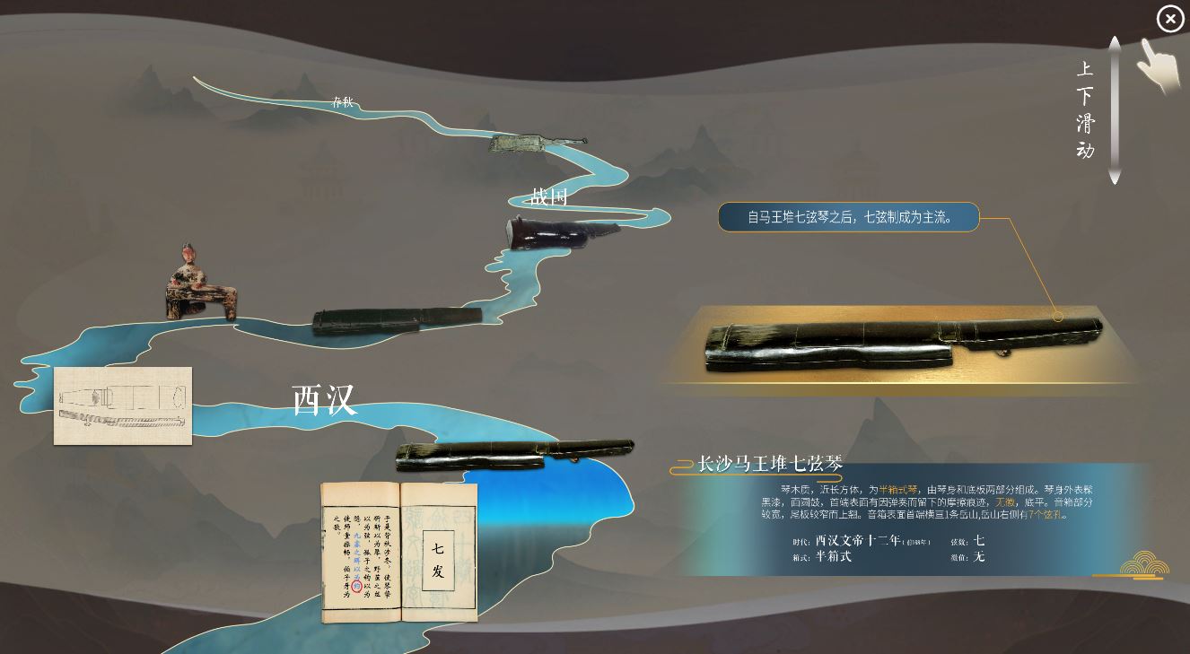 展览中推出了由天津大学和湖南博物院联合开发的“高山流水遇知音”—湖南音乐知识图谱可视化、湖南青铜乐器文物、湖南近代琴人琴事、古琴虚拟弹奏、湖南少数民族音乐等多个数字展项,以及听见湖湘文物知识图谱微信导览小程序。展览通过将项目技术成果与湖南省博物院丰富的音乐藏品相结合,构建了音乐文物知识图谱和技术平台,汇聚形成湘湖音乐相关的文物、乐声、人物、文学、历史、图像等多源异构文物大数据,将珍贵音乐文物实物和多种沉浸式互动数字展示技术相结合,打造了一个音乐文明的活性文本和视听盛宴。