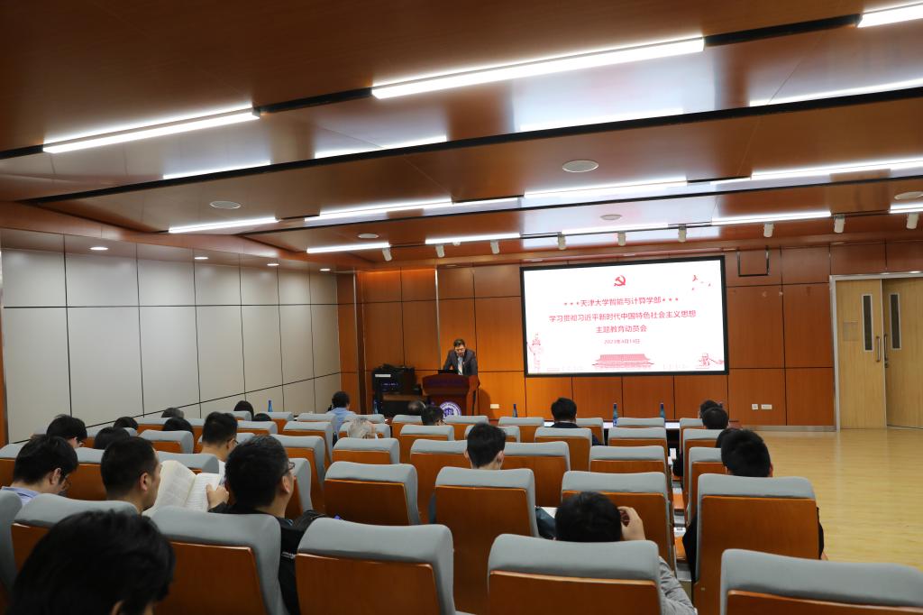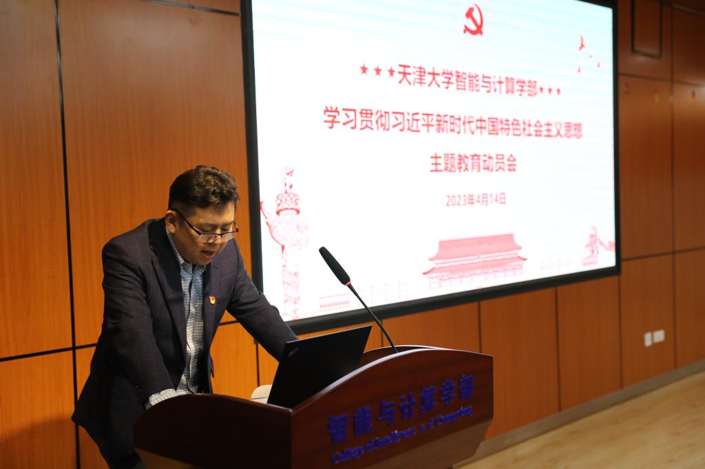 党委书记魏建国首先向与会老师传达天津大学学习贯彻习近平新时代中国特色社会主义思想主题教育动员大会会议精神,并对学部如何开展主题教育进行了安排部署。他强调,学习贯彻习近平新时代中国特色社会主义思想主题教育,是党中央为全面贯彻党的二十大精神、动员全党同志为完成党的中心任务而团结奋斗所作的重大部署,事关全局、意义重大。学部党委要教育引导全体师生坚定拥护“两个确立”、坚决做到“两个维护”,加强组织领导,形成工作合力,营造好浓厚氛围,扎实有力推进主题教育各项工作。他还指出,要发挥智能与计算学部专业特色,利用好先进技术和动画专业师生特长,让信息化手段跟思想教育传播相结合,踏踏实实将主题教育落实、落细、落深,利用调查研究的成果,确实推动学部中心工作更好更快发展。