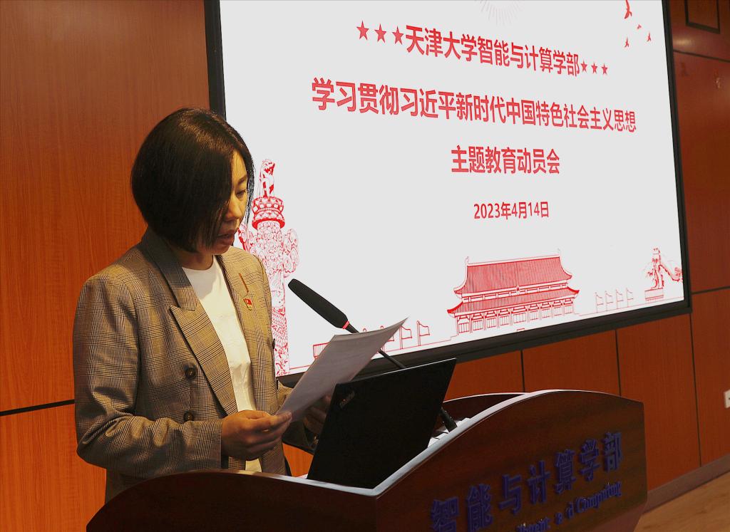 (通讯员 董会丽)4月14日下午,智能与计算学部党委召开学习贯彻习近平新时代中国特色社会主义思想主题教育动员会,学校主题教育领导小组办公室副主任、校纪委副书记张蕾到会指导,学部党委委员、领导班子成员、教工党支部书记、支部委员、辅导员以及学生党支部书记代表等参会。会议由党委副书记赵娜主持。