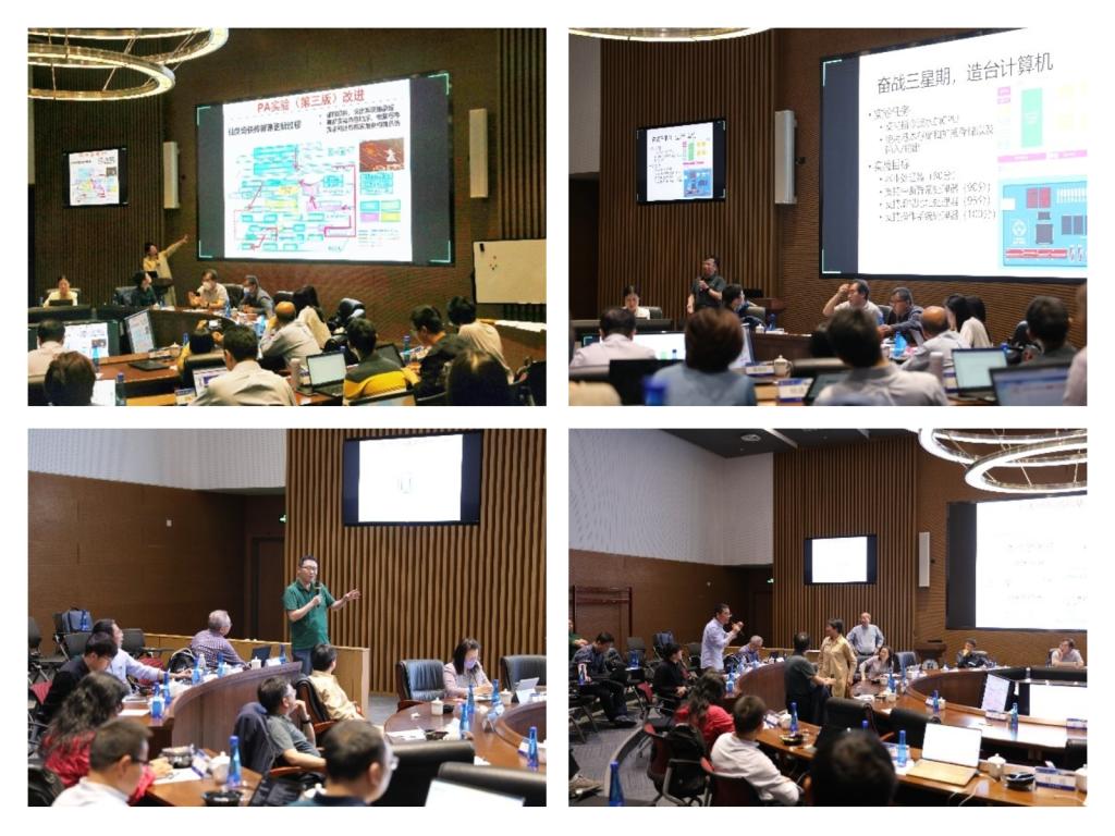 三位虚拟教研室负责人南京大学袁春风教授、清华大学刘卫东教授、北京大学陈向群教授和教研室相关教师分别介绍了本虚拟教研室成员单位在三门课程中实验体系和实验平台的特色工作,着重说明了贯通三门核心课程的教学实验设置的方法和取得的成效,与会教师围绕实验体系建设进行了充分细致的研讨。针对三门课程知识体系衔接点以及教学案例贯通设计上,南京大学和北京大学做了主题发言,经大家充分讨论,形成了以经典的“hello world“程序的执行全过程为案例来贯通三门课程相关知识点的共识,并商讨建立了案例编制的工作机制。