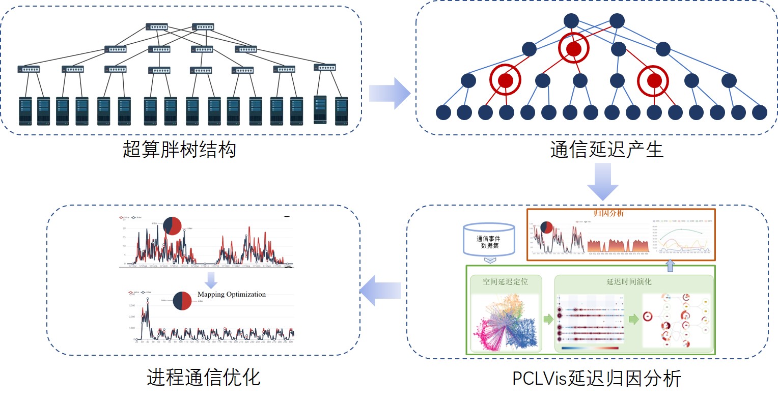 该系统可以让领域专家充分利用我国世界领先的超算硬件资源,以非root用户探索网络延迟的所在,并为用户提供可能的解决方案,助力领域专家构建更大规模的高精度仿真,由智能与计算学部毕重科副教授负责的VIS&HPC实验室研发。