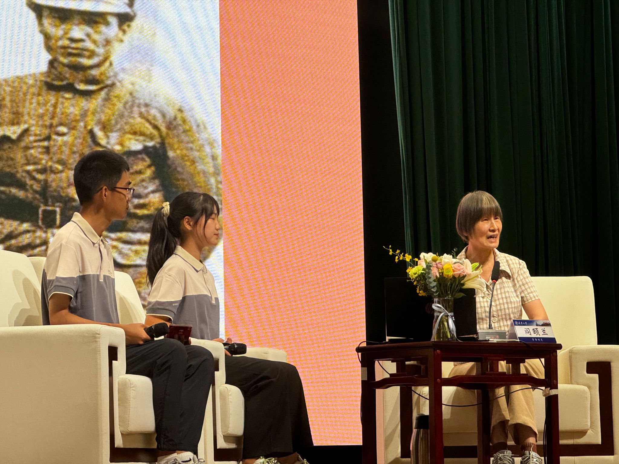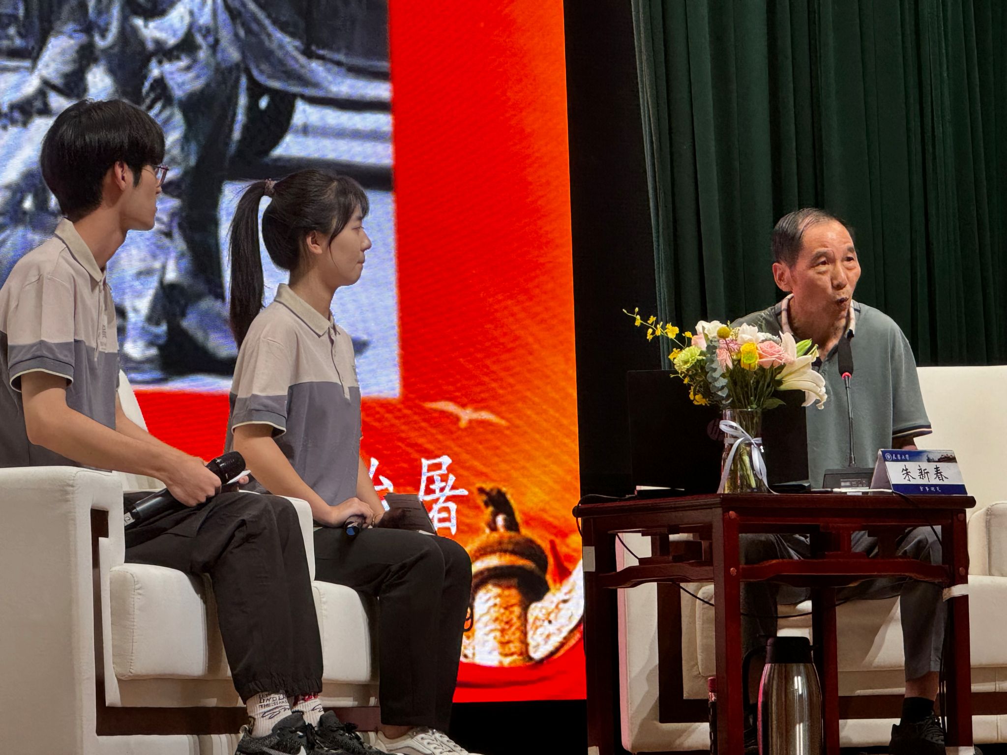 阎颐兰回顾了父亲阎又文将军为了新中国,勇于担当,甘于奉献,在党的隐蔽战线的特殊工作经历和解放后因党和国家的需要长时间不能公开真实革命经历的牺牲奉献事迹。一段段感人肺腑的红色故事,一件件详实的历史影像,现场学生不时爆发出阵阵掌声,更在动情处潸然泪下。宣讲结束后,同学们纷纷上台簇拥着朱新春老师、阎颐兰老师求签名并合影留念。