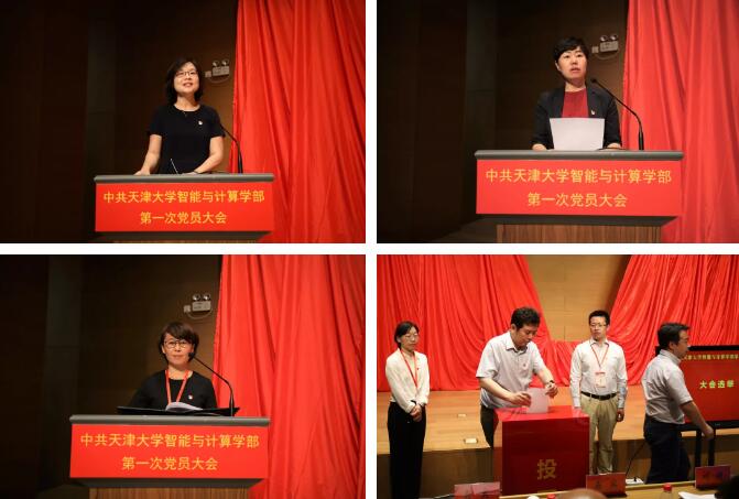 大会审议通过了工作报告。随后,学部智能语音团队研发的全国首个高校人工智能新闻主播海小棠向大家宣读《中共天津大学智能与计算学部第一届委员会委员候选人预备人选酝酿情况》,全体代表审议了《中共天津大学智能与计算学部第一次党员大会选举办法(草案)》,通过了总监票人、监票人名单,并通过无记名投票方式差额选举产生了中共天津大学智能与计算学部第一届委员会委员。他们是(以姓氏笔画为序):史慧、冯伟、花建锋、李晓红、张维、赵娜、胡清华、喻梅、魏建国。