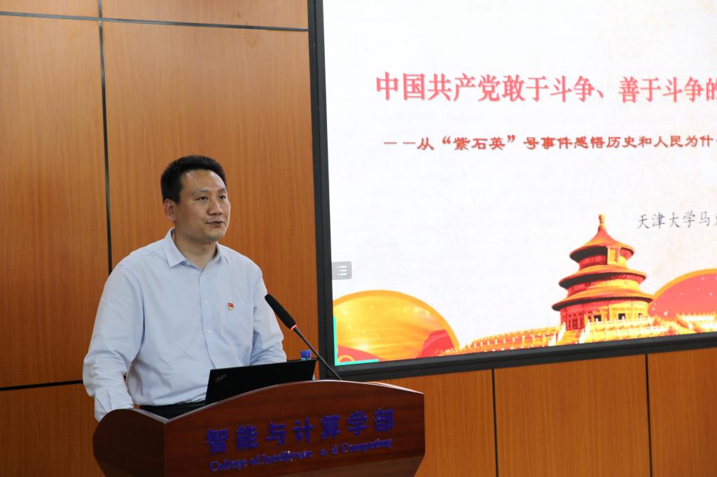(通讯员 董会丽)为扎实开展好主题教育,引导党员坚定理想信念,立足岗位建新功,5月26日下午,智能与计算学部邀请马克思主义学院程斯宇老师为学部师生党员作题为“中国共产党敢于斗争、善于斗争的经典案例分析”的专题辅导报告,智能与计算学部教师党员和学生党支部书记60余人聆听了报告。