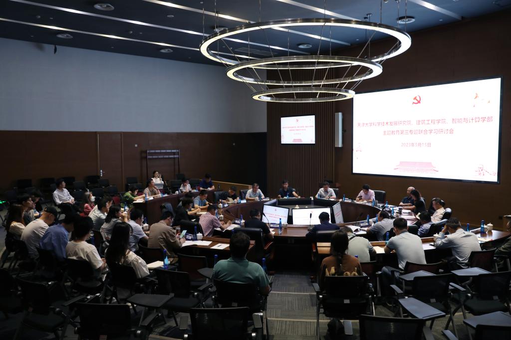 (通讯员 李娜)5月15日下午,天津大学科学技术发展研究院、建筑工程学院、智能与计算学部主题教育第三专题联合学习研讨会召开,会议围绕学习贯彻习近平新时代中国特色社会主义思想主题教育专题三“深入学习习近平总书记关于教育、科技、人才的重要论述”开展理论联学。天津大学副校长王天友,学校党建督导员贡振宇,天津大学科学技术发展研究院、建筑工程学院、智能与计算学部党委理论学习中心组成员,建筑工程学院港口党支部成员、智能与计算学部可视计算实验室第一党支部成员及部分师生代表等共计40余人参加会议,智能与计算学部党委书记魏建国主持研讨会。