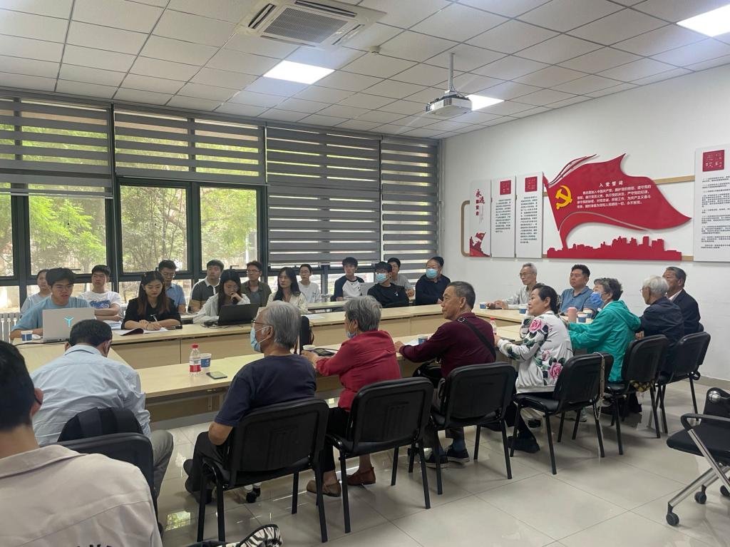 在自由交流环节,每一位退休教工党员做了自我介绍,并分享了自己在职期间关于教育、科技、人才的故事,每个故事都是前辈们的心血和汗水,学生党员们了解并感受到老一辈计算机人是如何教书育人并在科研上攻坚克难的,为后续更好开展科研工作找到了更真切的动力。