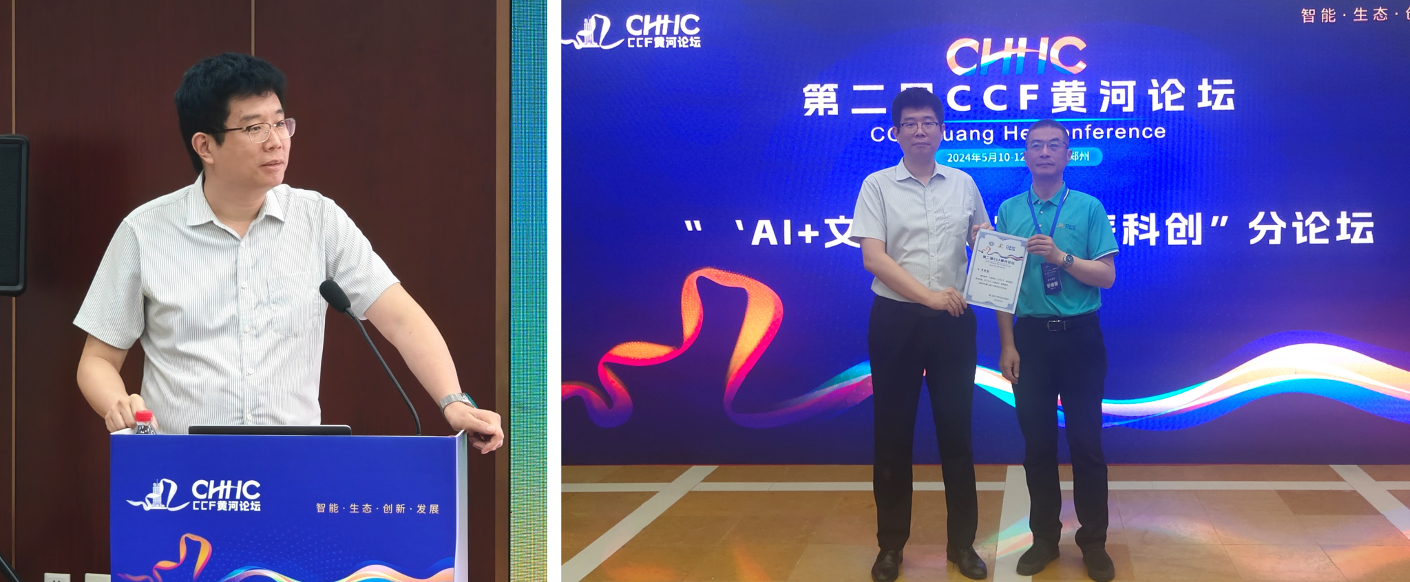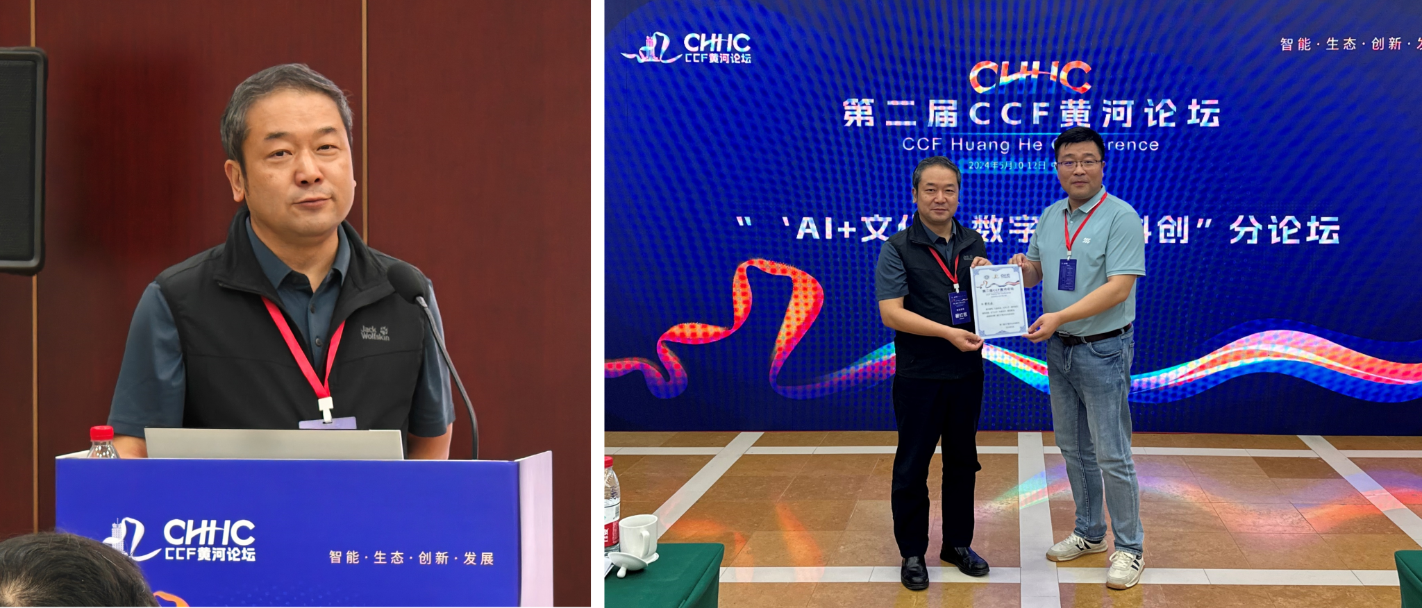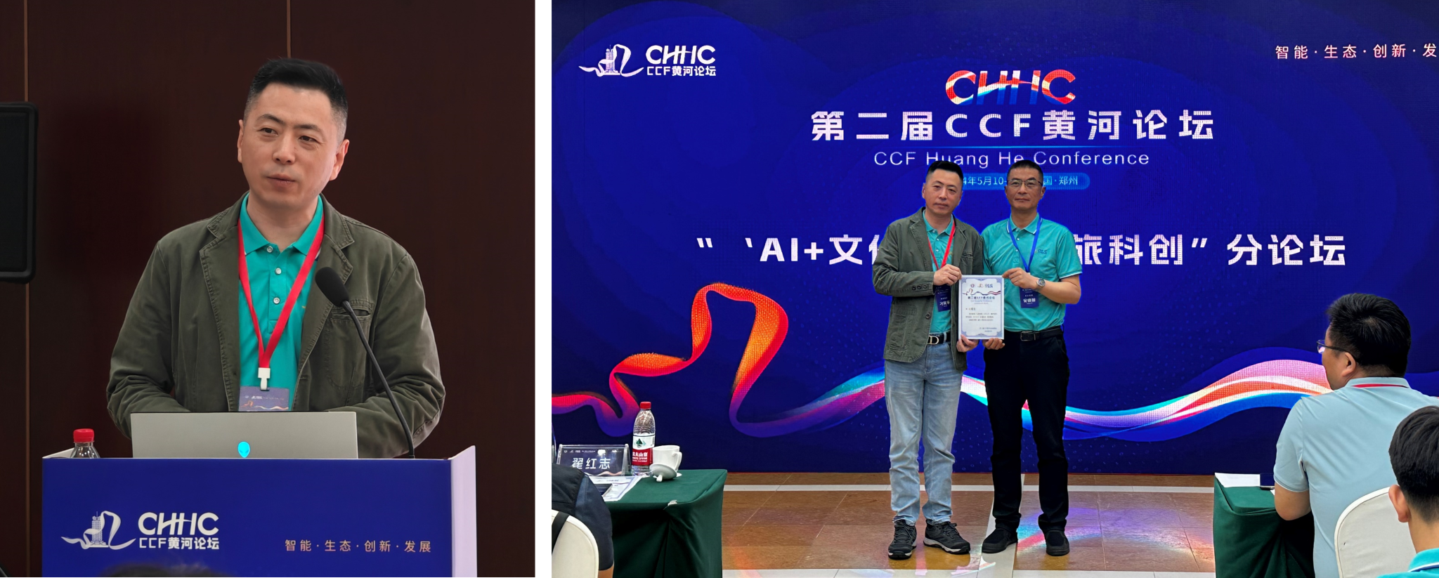 (通讯员 张乾)5月11日,第二届CCF黄河论坛(CHHC 2024)“AI+文化”数字文旅科创论坛在郑州市黄河迎宾馆召开。该论坛由CCF天津和CCF兰州共同承办,天津大学智能与计算学部副主任冯伟教授、甘肃政法大学网络空间学院院长安德智教授担任论坛主席。河南博物院副院长翟红志、复旦大学计算机科学技术学院教授金城、浙江大学文化遗产研究院副院长刁常宇、天津恒达文博科技股份有限公司副总经理李世杰、河南博物院文创办兼社会服务部主任宋华受邀参加论坛,并做主题报告分享。