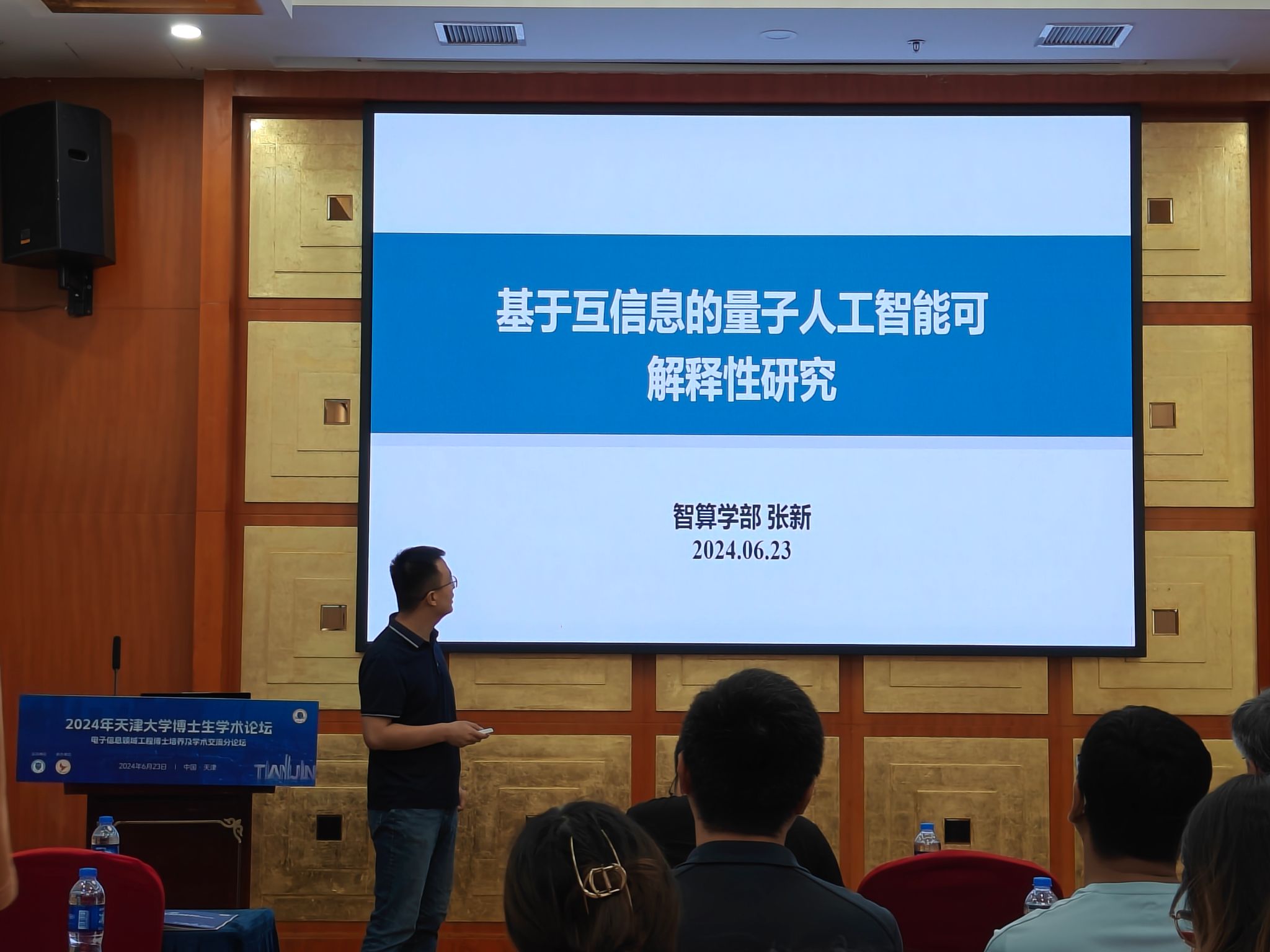 会上,智算学部博士生张新同学做了题为《基于互信息的量子人工智能可解释性研究》的报告,从互信息的角度出发,展示了量子神经网络在训练过程中测量子系统和丢弃子系统的互信息行为,阐述了测量子系统的两阶段现象,揭示了量子神经网络的工作机制。报告得到参会人员的广泛好评。