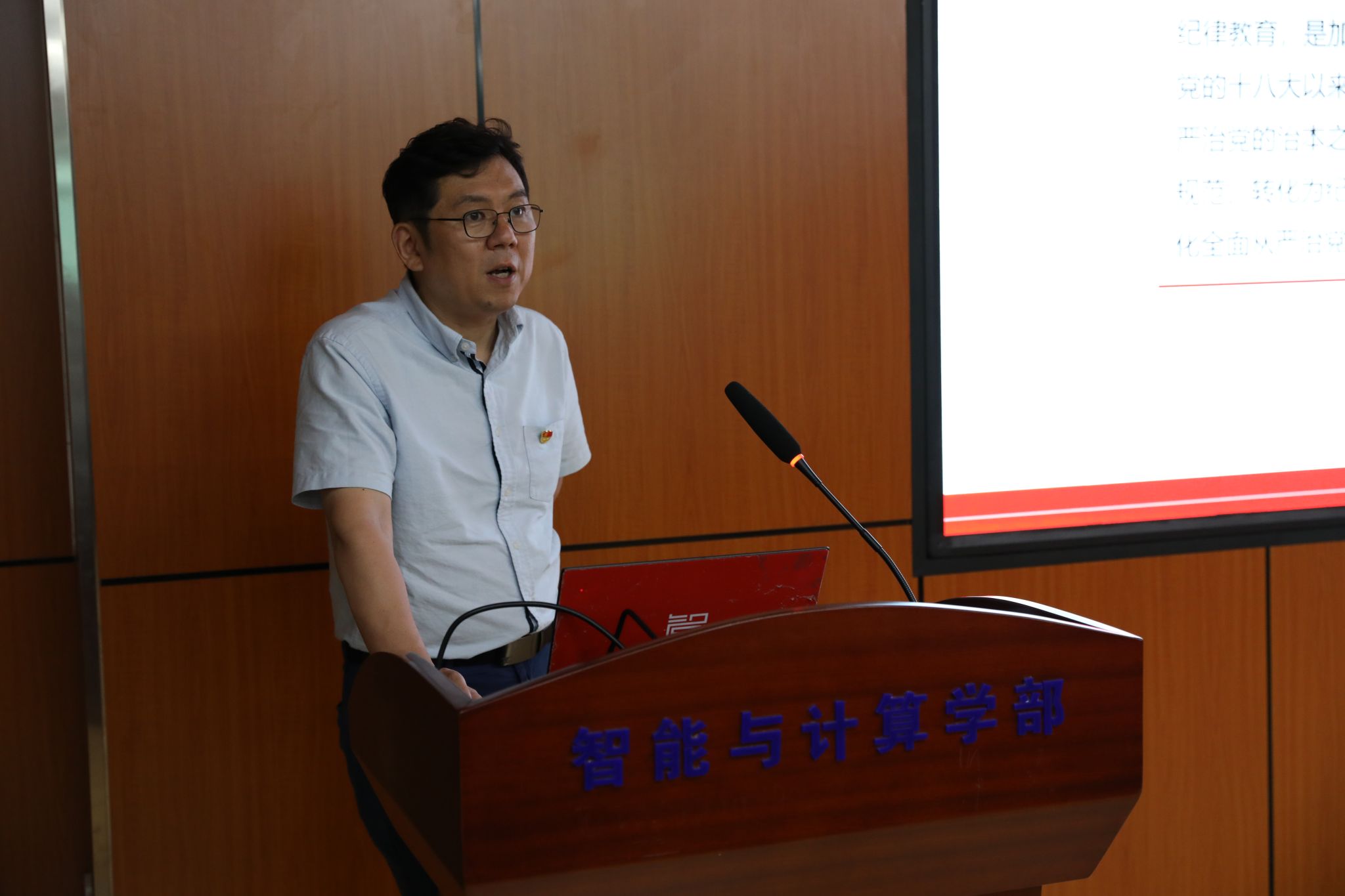 (通讯员 董会丽)为深入贯彻落实党的二十大精神,持续推进全面从严治党,引导师生认真学纪、自觉明纪、严格守纪,7月1日下午,智能与计算学部党委书记魏建国讲了一堂题为《做学纪知纪明纪守纪的合格党员》的专题党课,学部师生党员、群众近100人聆听党课。