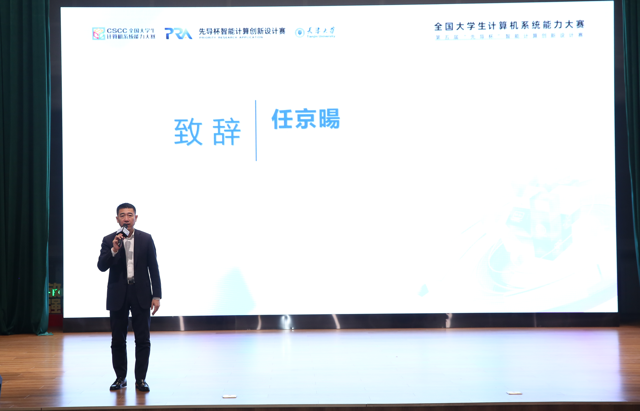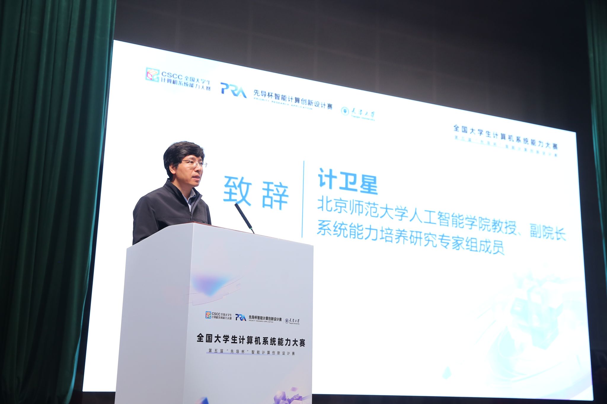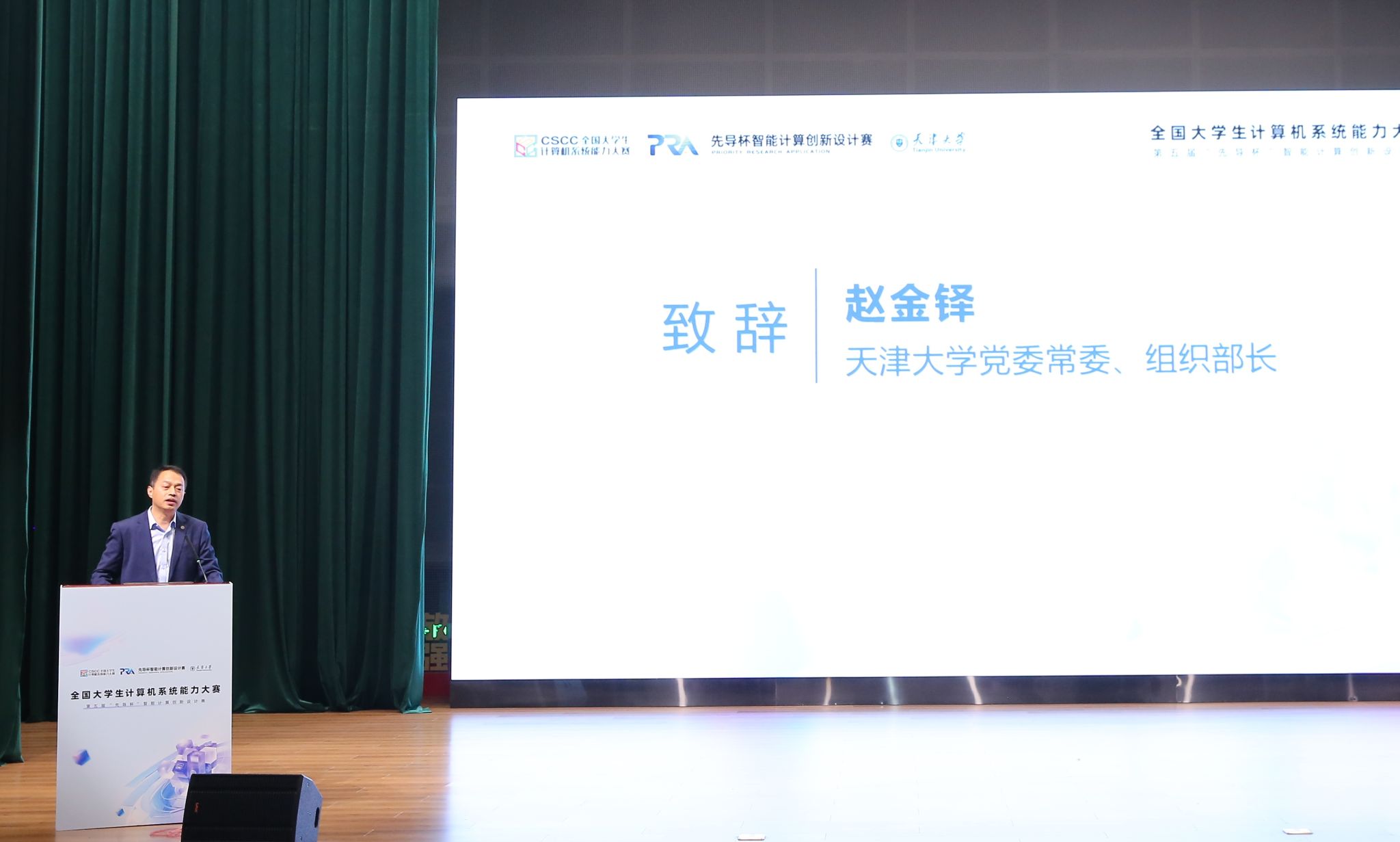 赵金铎在致辞中对来自全国各地的参赛队伍、专家评委和嘉宾表示热烈欢迎。他表示,天津大学作为智能计算教育的先行者,始终致力于培养能够引领未来的科技人才。此次‘先导杯’大赛不仅是对学生能力的一次检验,也是天津大学与产业界合作,共同推动智能计算领域发展的重要实践。天津大学将继续加强与业界的协同,为国家培养更多高素质的科技人才,推动智能计算技术的进步。