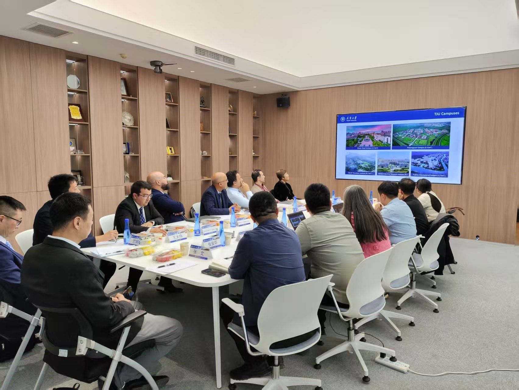 喻梅副主任详细介绍了天津大学以及智能与计算学部的基本情况,展现了学校的学科优势、科研成果和教育理念,推广研究生教学培养模式。双方基于天津大学联合承担的科技部重点研发计划国际合作项目展开讨论。摩洛哥默罕默德六世理工大学Robert Basmadjian教授带来的Toubkal超算中心以及该校能源信息研究进展,为与会者打开了解摩洛哥科研领域的窗口。摩洛哥矿业大学Abdelbari Redouane教授介绍了摩洛哥的高等教育体系和特色,让中方对摩洛哥的教育模式有了更深入的认识。摩洛哥可再生能源研究院(IRESEN)合作部主任Mouhcine Benmeziane阐述了IRESEN在摩洛哥可持续能源转型领域的作用,其先进的理念和实践经验引发了热烈讨论。最后,双方就“中摩人工智能与可再生能源联合实验室”项目进展进行了充分的讨论,达成进一步合作计划。