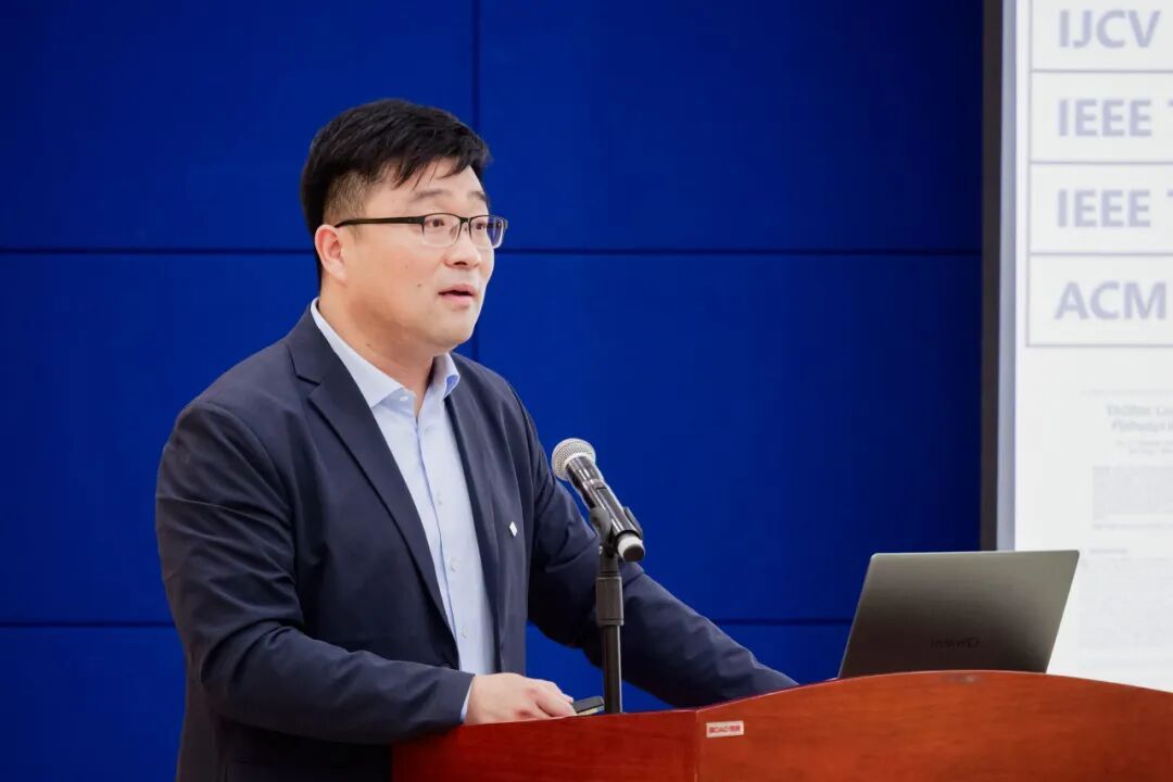 基地常务副主任冯伟就科研基地自成立以来的工作进展、取得的主要成果、当前面临的挑战以及未来发展规划进行了系统汇报。他指出,自成立以来,基地始终积极融合计算机、软件、人工智能、精密仪器等多学科优势,着力构建文物本体表面“监测-分析-研究”全链条科技创新体系。立足 “保护第一、加强管理、挖掘价值、有效利用、让文物活起来”的新时代文物工作方针,基地聚焦文物智能感知、文物智能保护、文物数据智能分析与服务三大研究方向持续深耕,取得了一些代表性成果。面向未来,基地将着力推动实验室技术向行业应用转化,推进监测技术从“点位级”向“区域级”拓展,持续探索人工智能在文物领域的创新应用。