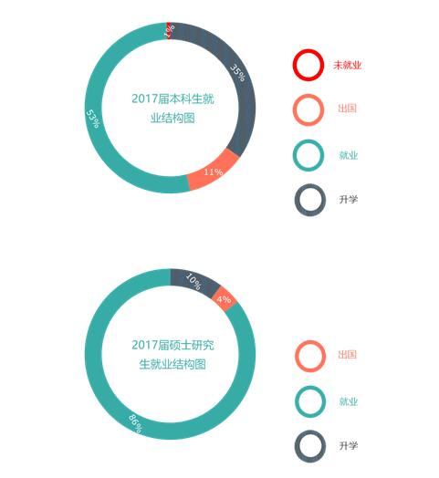 其中,本科生,硕士研究生就业结构图如下所示: