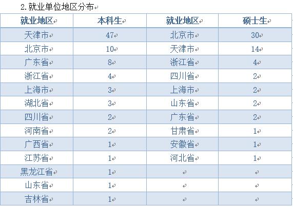 如上图所示,2017届毕业生就业单位主要分布在北京、天津。其后,是广东、浙江等省市。
