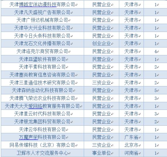 联合举办了软件学院、计算机学院2017年春季专场招聘会,在经过学院精心对比和筛选之后,受邀参加本次招聘会的有16家京津冀地区企业。包括:天津三星电子有限公司、天津华永无线科技有限公司、中国汽车技术研究中心数据资源中心、天津天地伟业科技有限公司以及国家动漫园等。近百名毕业生与用人单位进行洽谈。