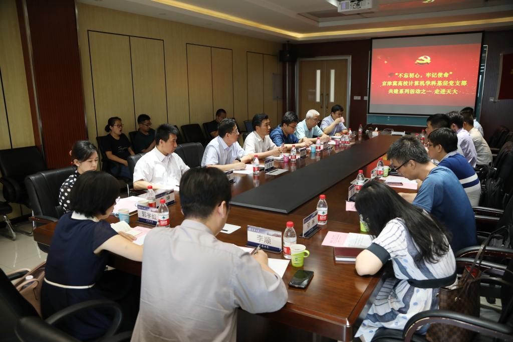 7月5日,以“不忘初心、牢记使命”为主题的京津冀高校计算机学科基层党支部共建系列活动在55楼B202正式启动,该活动由天津大学智能与计算学部、清华大学计算机系以及国际关系学院信息科技学院共同发起,旨在搭建基层党建交流新平台,切实发挥党建引领事业发展的促进作用。
